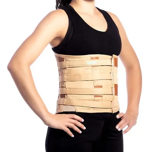 Solte os fechos de contato do colete. Posicione as hastes posteriores alinhas ao centro da coluna.Transpasse as tiras frontais pelos passadores metálicos dando a regulagem necessária para o fechamento do colete de acordo com a prescrição médica.